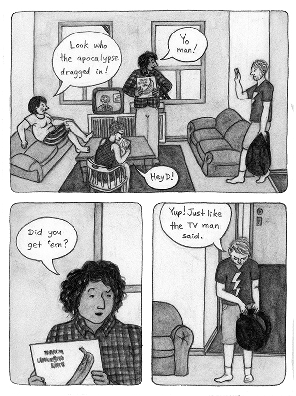 A 32 page comic about the end of the world, drawn in pencil and graphite wash.